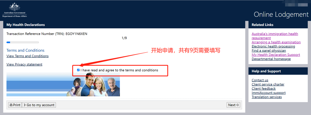 进入 “My Health Declarations” 页面后,按照系统提示逐步填写健康声明申请表。表格内容主要涉及个人健康状况、过往病史等基础信息,需如实填写(虚假信息可能影响签证诚信记录)。