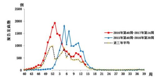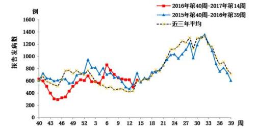 其它感染性腹泻病周报告病例情况 来源:北京市卫计委